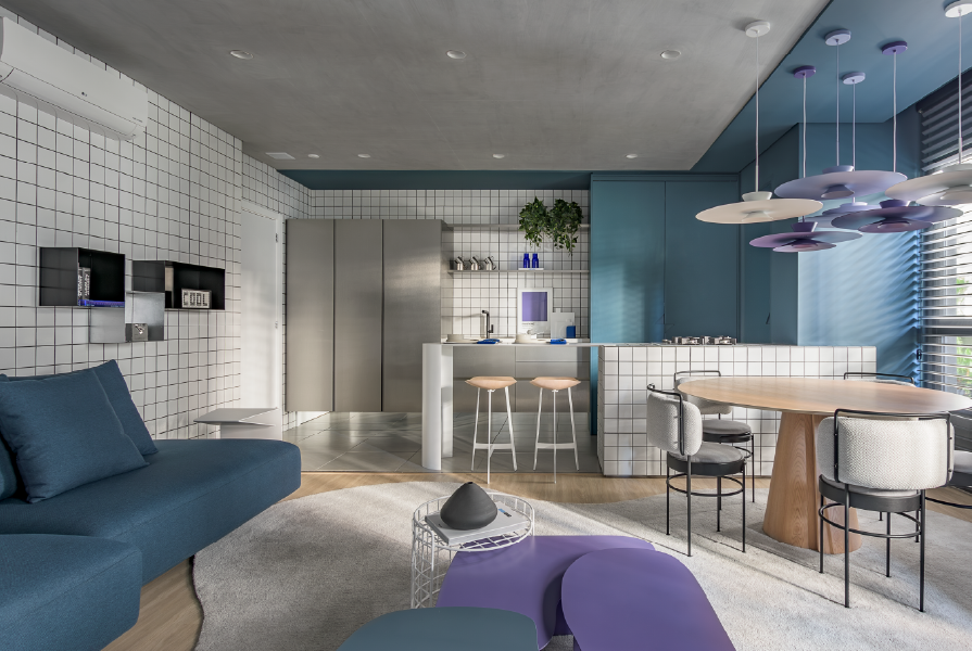 Os decorados do blu.INK (60 m² e 75 m²) refletem de forma autêntica o conceito ousado deste projeto da Vanguard na Gleba Palhano. Aliam estética e funcionalidade, são criativos e repletos de elementos artísticos. Integram arte e design ao cotidiano, destacando tons de azul, mistura de materiais e texturas.