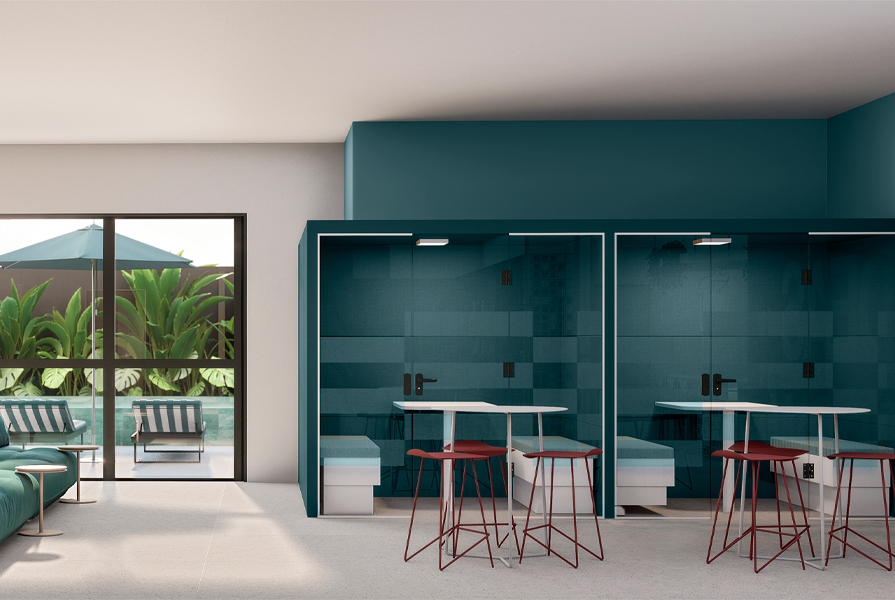 Imagem ilustrativa do coworking do Beat, breve lançamento da Vanguard no jardim Bela Vista.